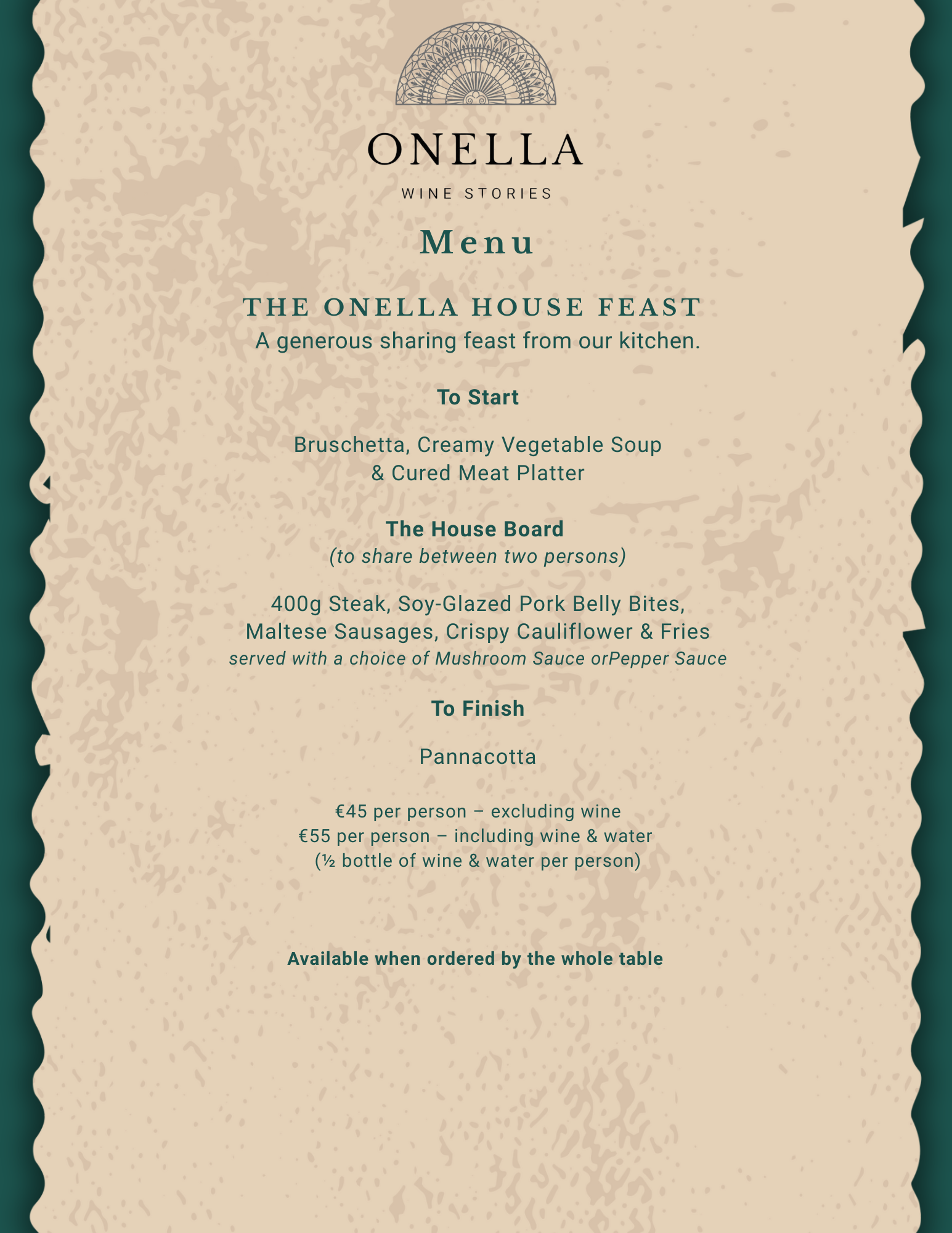 Our food is made for sharing. The menu changes regularly to highlight the best seasonal ingredients, and is always rooted in comfort and quality. Signature favourites include our pinsa selection and our oven-baked Onella rosette — dishes that have become part of who we are.